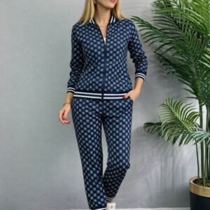 Kadın Uzun Kollu önden Fermuarlı Desenli Iki Iplik Bluz Ve Pantolon Ikili Takım