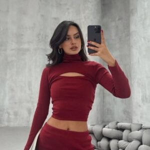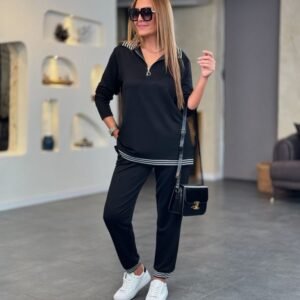 Kadın Uzun Kollu Ribana Ve Fermuar Detay Bluz Ve Yüksel Bel Pantolon 2li Takım