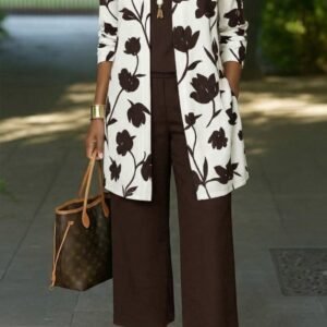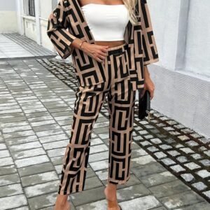 Kadın Uzun Kollu önü Açık Desenli Iki Iplik Ceket Ve Pantolon Ikili Takım