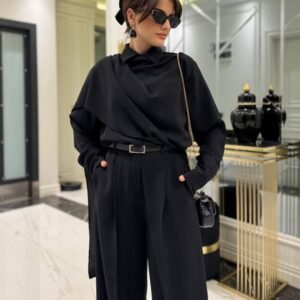 Kadın Uzun Kollu şal Detaylı Bluz Ve Pantolon Ikili Takım (kemer Dahil Değil)