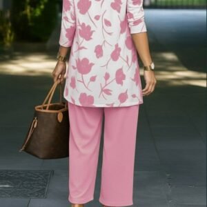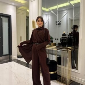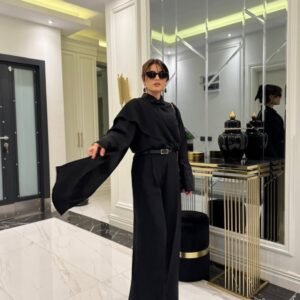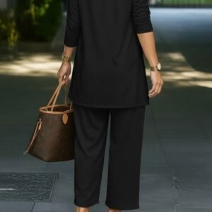 Kadın Uzun Kollu Pencere Detay Göğüs Dekolteli Bluz Ve Bol Paça Pantolon Ikili Takim