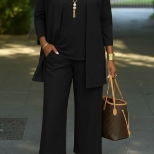 Kadın Uzun Kollu önü Açık Modal Ceket Kolsuz Viskon Iki Iplik Bluz Ve Pantolon üçlü Takım