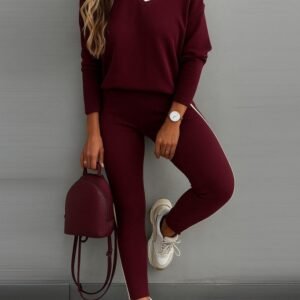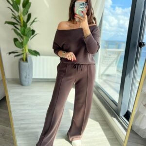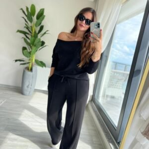 Kadın Uzun Kollu Tek Omuzdan Açık Modal Bluz Ve Pantolon Ikili Takım