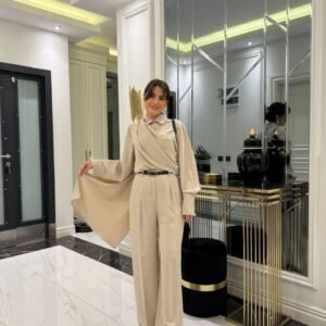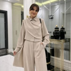 Kadın Uzun Kollu şal Detaylı Bluz Ve Pantolon Ikili Takım (kemer Dahil Değil)