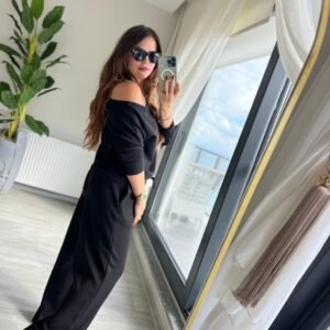Kadın Uzun Kollu Tek Omuzu Açık Detaylı Viskon Iki Iplik Bluz Ve Pantolon Ikili Takım