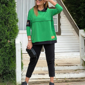 Kadın Yeşil Kapşonlu Etek Ucu Detay Arma Ters Dikiş Gorunumlu Ikili Takım