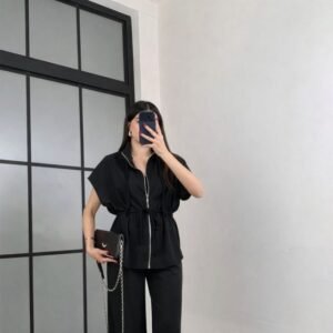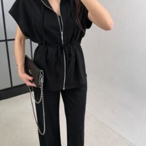 Kadın Yarasa Kol Fermuar Ve Lastikli Bağcık Detay Ceket Pantolon Ikili Takım