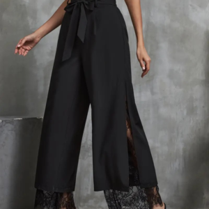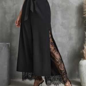 Kadın Yüksek Bel Belden Kuşaklı üst Dalgıç Alt Dantel Detaylı Dalgıç Pantolon