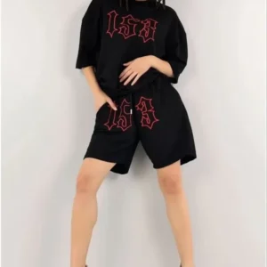 Unisex Nakış İşlemeli Şort Takım – Siyah
