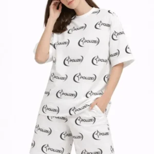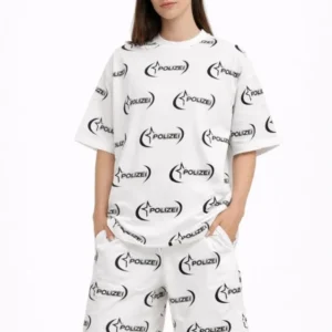 Oversize Ön Ve Arka Baskılı Tişört Şort Takım Rahat Kalıp Yazlık Günlük Kombin – Beyaz