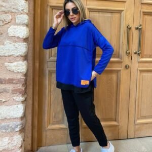 Kadın Kapşonlu Etek Ucu Detay Armalı Ters Dikiş Gorunumlu Ikili Takım