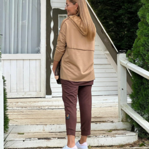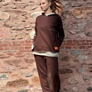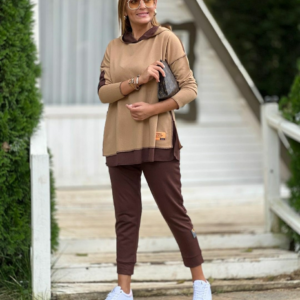 Kadın Kahve Kapşonlu Etek Ucu Detay Arma Ters Dikiş Gorunumlu Ikili Takım