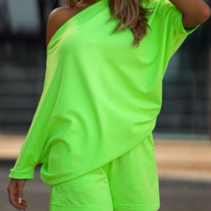 Kadın Kayık Yaka Salaş Iki Iplik Bluz Ve şort Ikili Takım