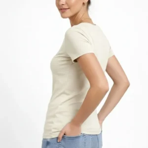 T-Shirt V Yaka Slim Fit Likralı Tişört Günlük Basic Body – Taş