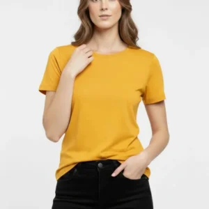 T-Shirt Bisiklet Yaka Slim Fit Likralı Tişört Günlük Basic Body – Sarı