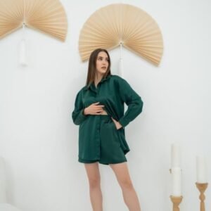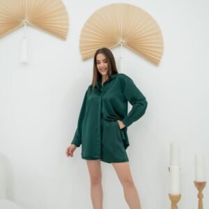 Zümrüt Saten Şortlu Takım