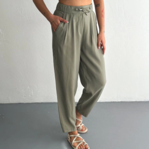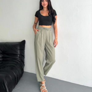 Yüksel Bel Rahat Paça Pantalon – Su Yeşili