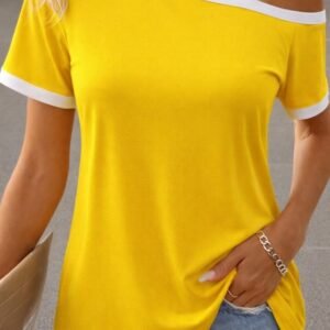 Kadın Kısa Kollu Tek Omuzu Açık Askı Toka Detaylı Viskon Bluz