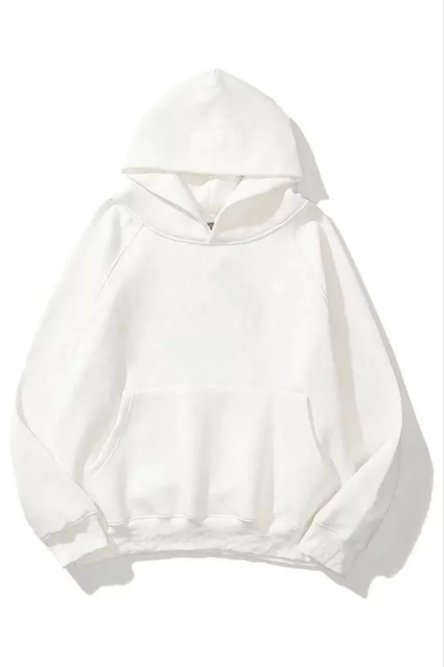 3 İplik Pamuklu Unisex Kapşonlu Sweetshirt – Beyaz