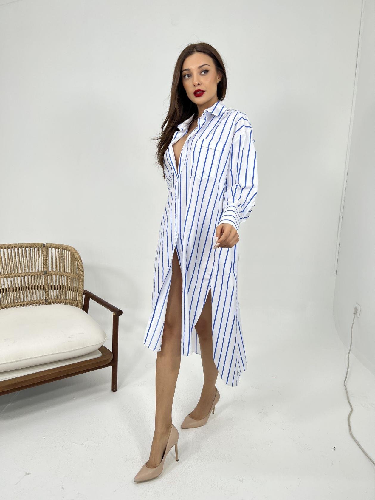 5216 GÖMLEK-BALTİMORE ÇİZGİLİ Modelin Ölçüleri: Boy:165, Kg:55, Göğüs:90, Bel:72, Kalça: 100 Modelin üzerindeki ürün M/38 bedendir