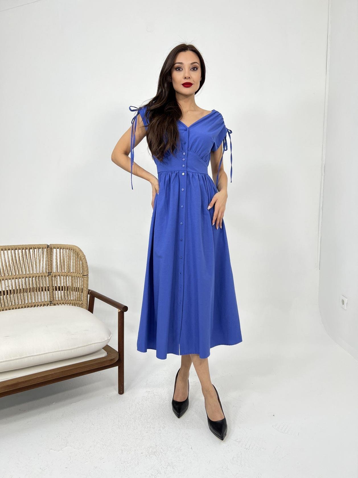 Kadın Askılı Geniş V Yakalı Sırttan Bağlamalı Yırtmaçlı Süprem Elbise