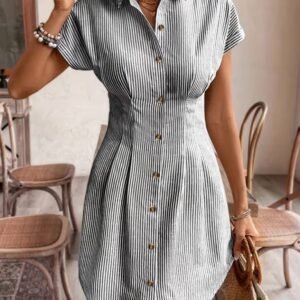 Kadın Kısa Kollu Yakalı önden Düğmeli Kısa Trikoton Elbise