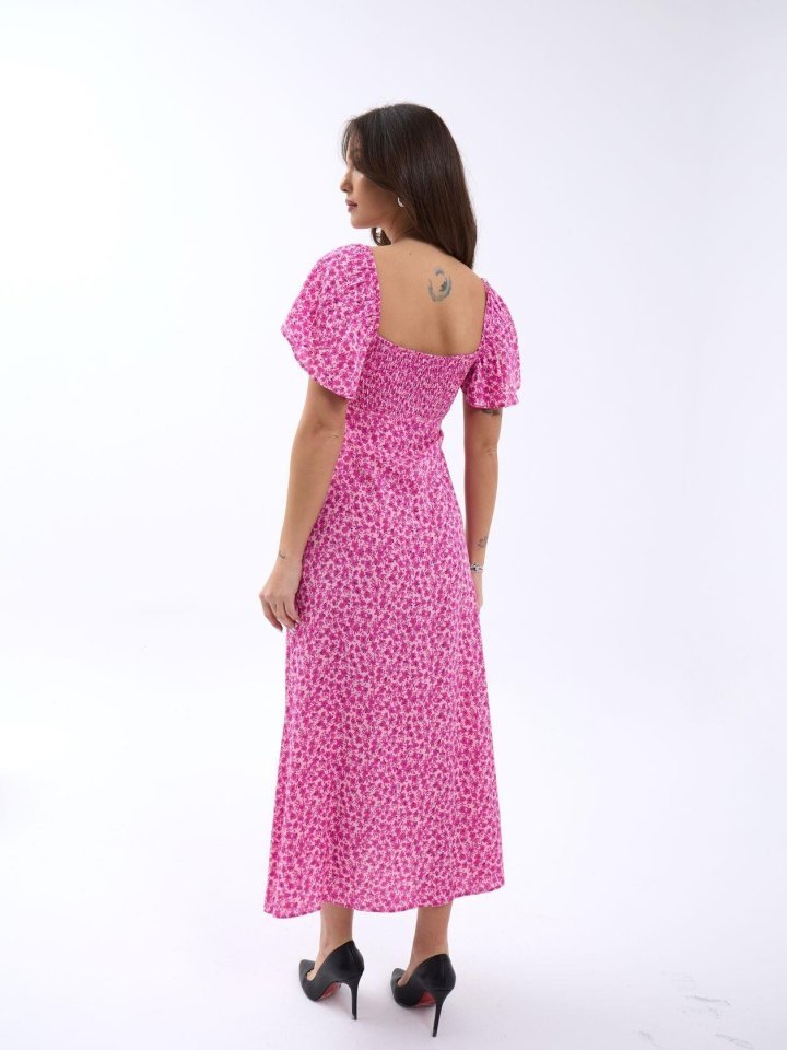 Kadın Kısa Kollu V Yakalı Yandan şerit Ve Yırtmaçlı Viskon Uzun Elbise