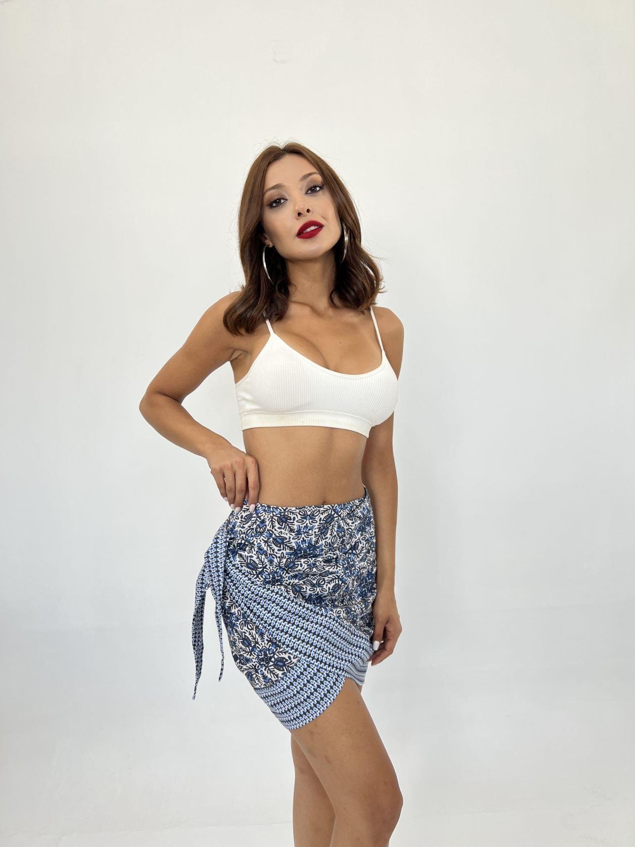 6262 ETEK-MAVİ Modelin Ölçüleri: Boy:165, Kg:55, Göğüs:90, Bel:72, Kalça: 100 Modelin üzerindeki ürün M/38 bedendir