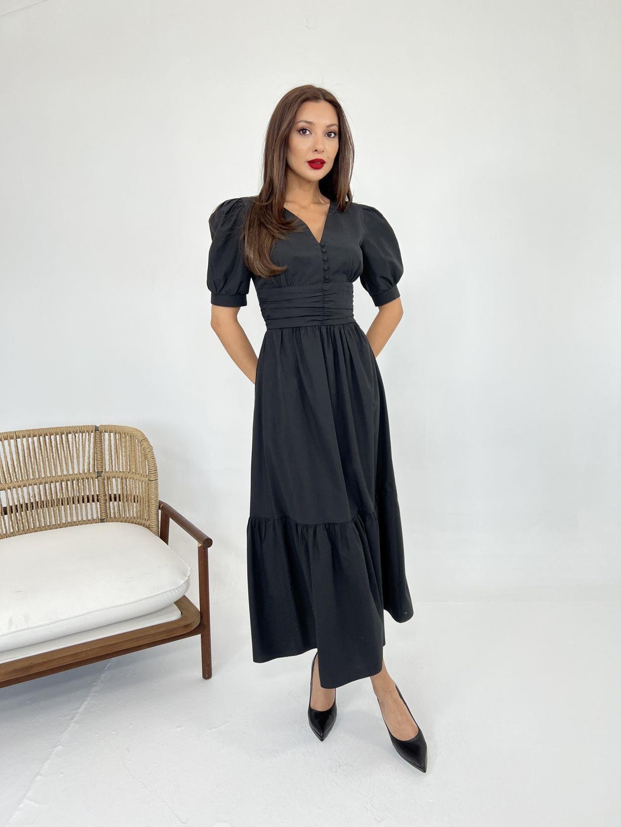 6411 ELBİSE-SİYAH Modelin Ölçüleri: Boy:165, Kg:55, Göğüs:90, Bel:72, Kalça: 100 Modelin üzerindeki ürün M/38 bedendir
