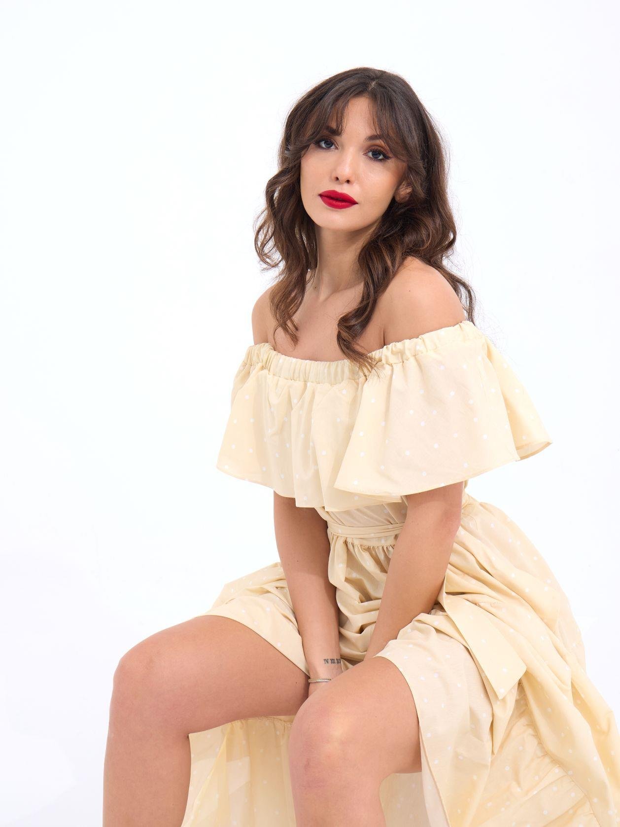 6473 ELBİSE-İRLANDA Modelin Ölçüleri: Boy:165, Kg:55, Göğüs:90, Bel:72, Kalça: 100 Modelin üzerindeki ürün M/38 bedendir