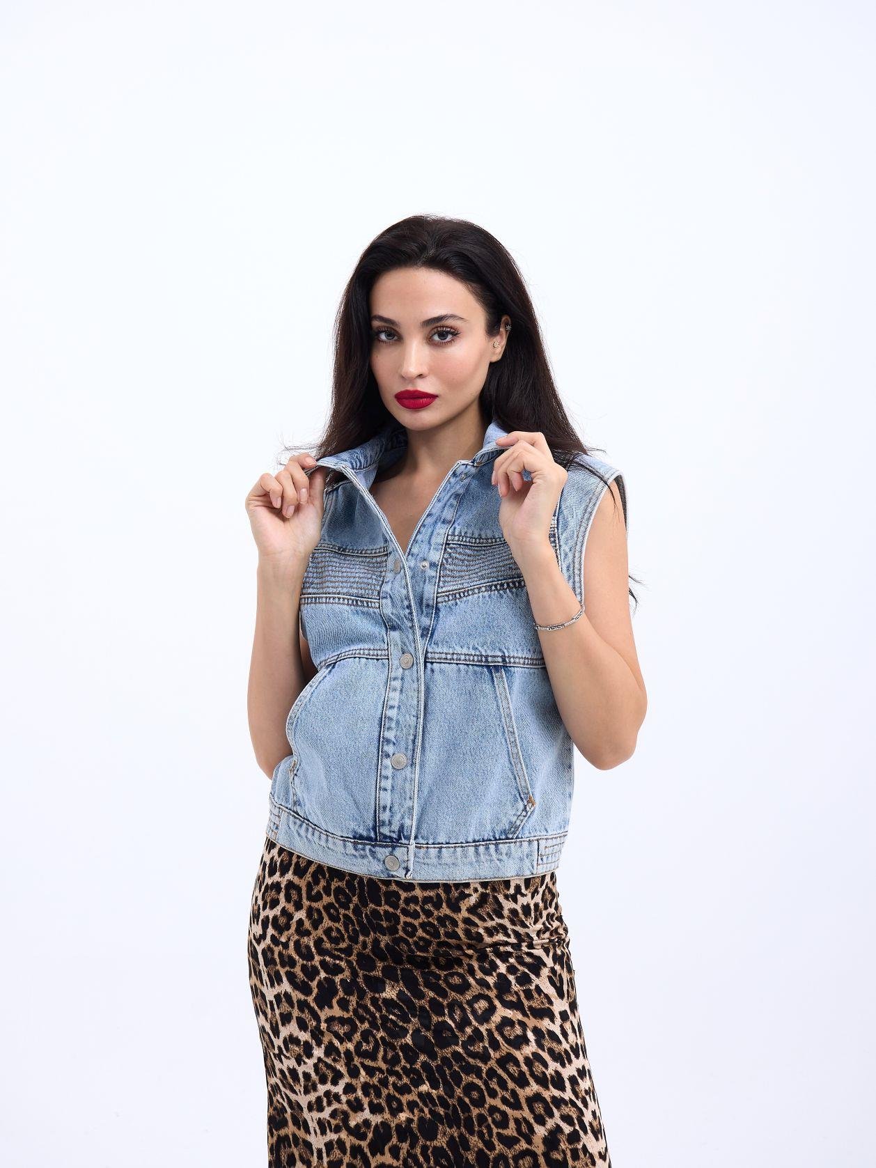 6779 KOT YELEK-MAVİ Modelin Ölçüleri: Boy:165, Kg:55, Göğüs:90, Bel:72, Kalça: 100 Modelin üzerindeki ürün M/38 bedendir