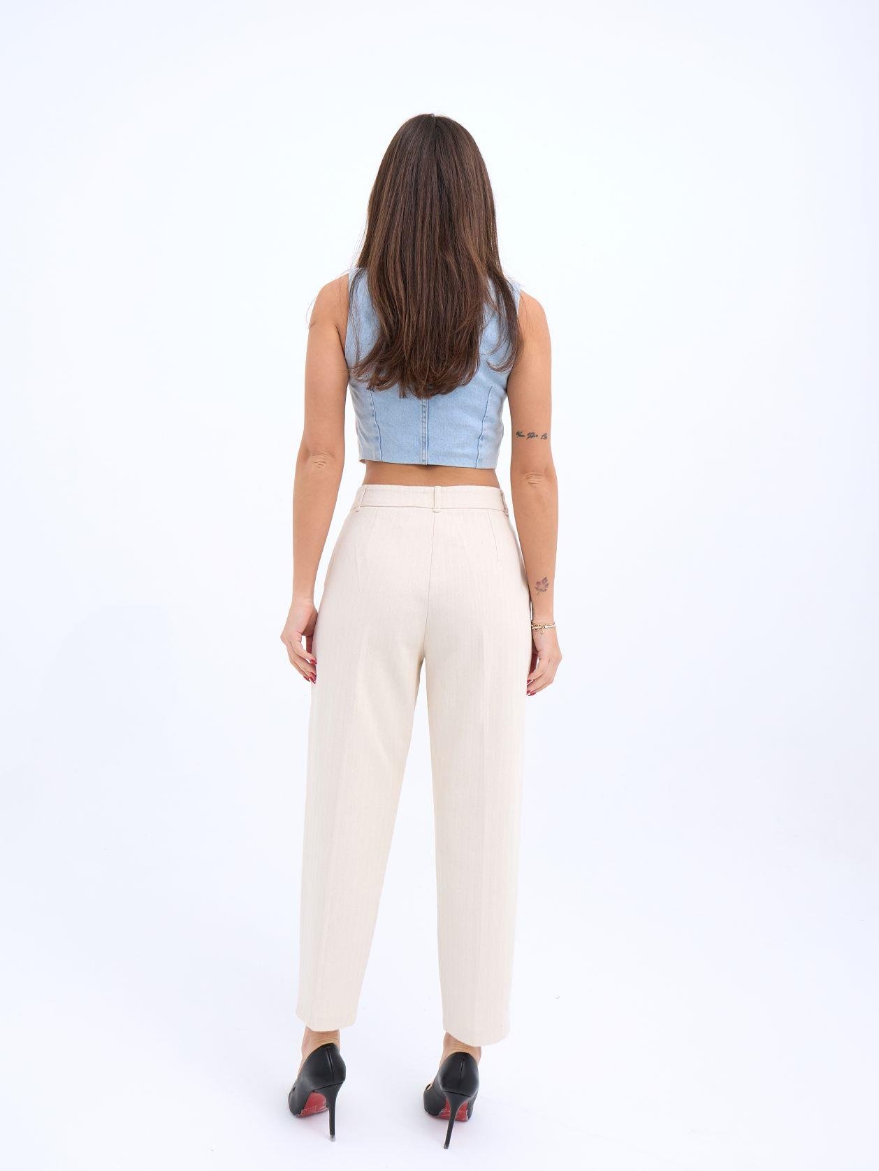 6917 PANTOLON-BEJ Modelin Ölçüleri: Boy:165, Kg:55, Göğüs:90, Bel:72, Kalça: 100 Modelin üzerindeki ürün M/38 bedendir