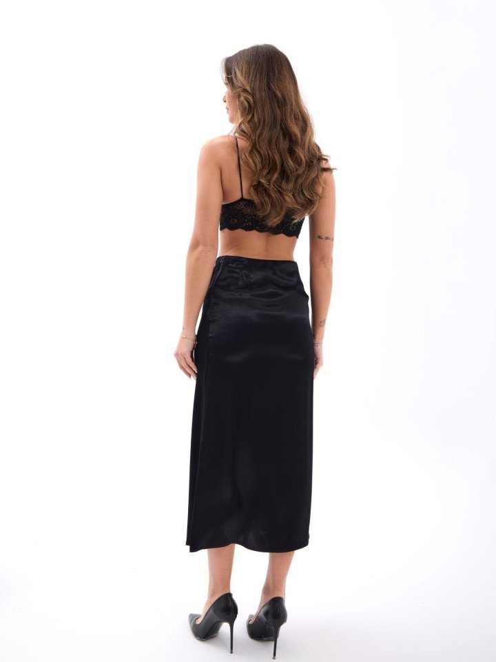 6986 ETEK-SİYAH Modelin Ölçüleri: Boy:165, Kg:55, Göğüs:90, Bel:72, Kalça: 100 Modelin üzerindeki ürün M/38 bedendir