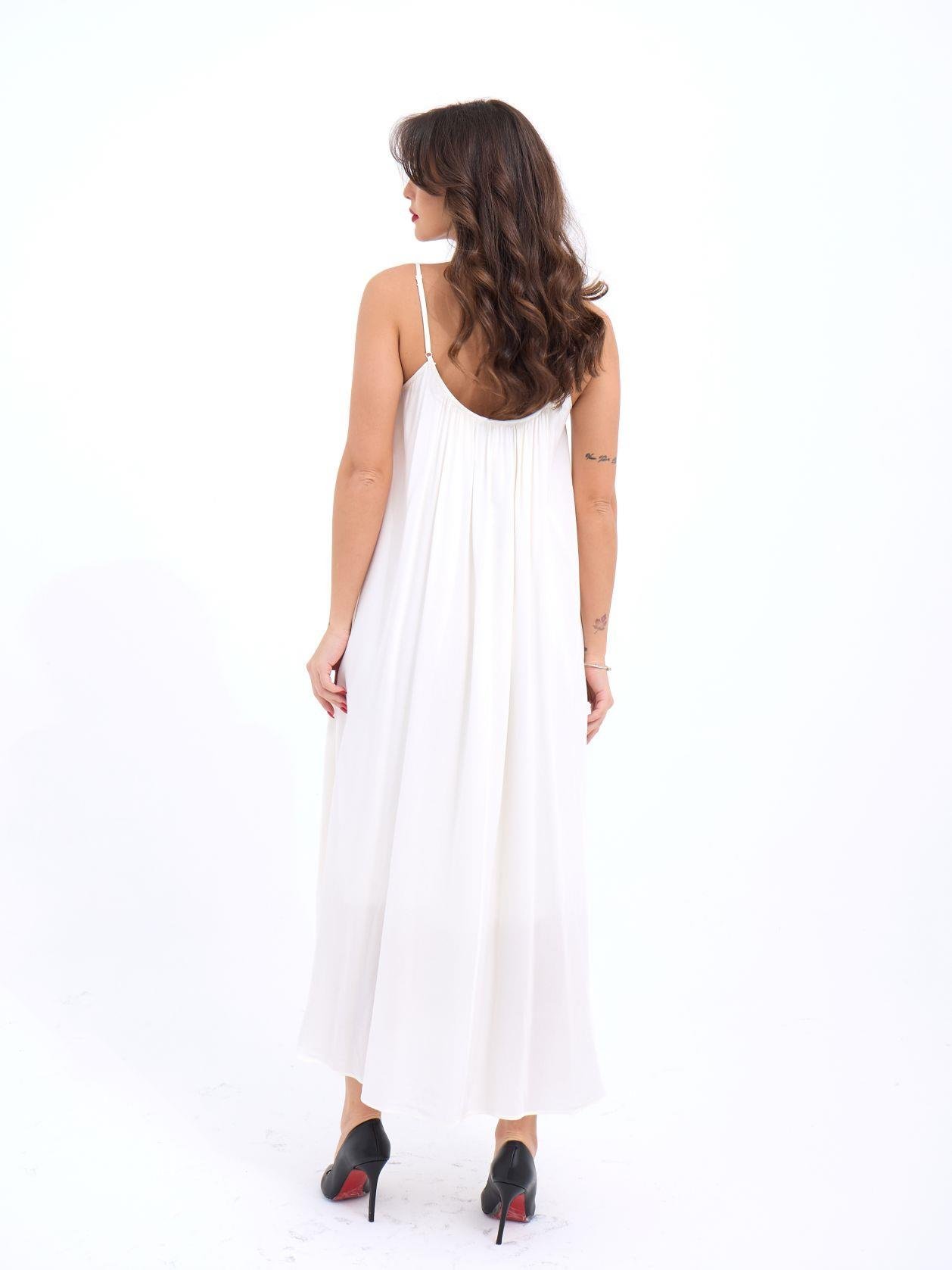 7296 ELBİSE-EKRU Modelin Ölçüleri: Boy:165, Kg:55, Göğüs:90, Bel:72, Kalça: 100 Modelin üzerindeki ürün M/38 bedendir