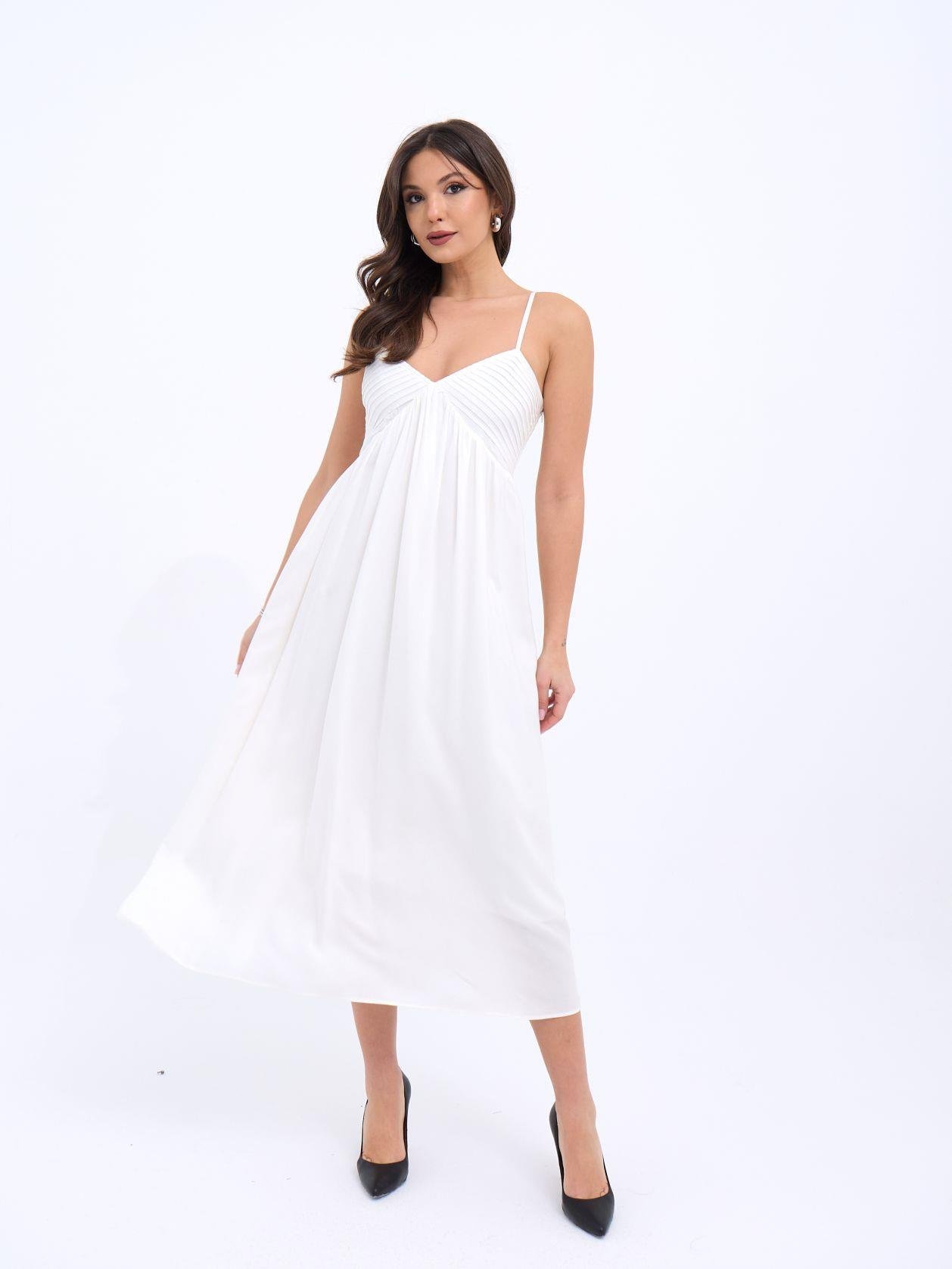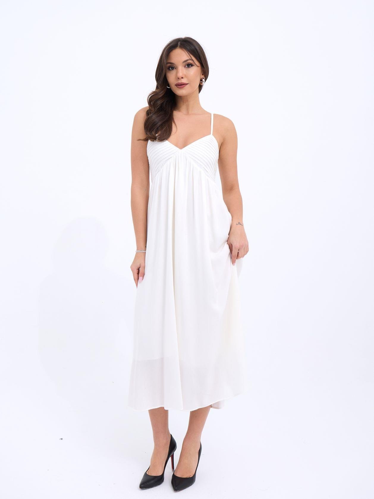 7322 ELBİSE-EKRU Modelin Ölçüleri: Boy:165, Kg:55, Göğüs:90, Bel:72, Kalça: 100 Modelin üzerindeki ürün M/38 bedendir