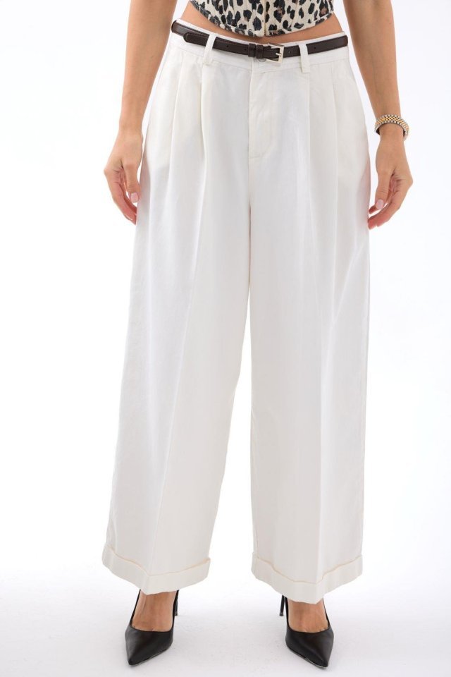 7396 PANTOLON-EKRU Modelin Ölçüleri: Boy:165, Kg:55, Göğüs:90, Bel:72, Kalça: 100 Modelin üzerindeki ürün M/38 bedendir