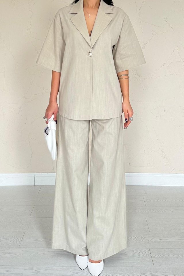 Bej Önü Tek Düğmeli Ceket Pantolon Takım