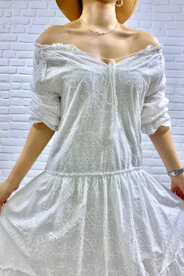 Beyaz Dantelli New Elbise Modelin Ölçüleri: Boy:165, Kg:55, Göğüs:90, Bel:72, Kalça: 100 Modelin üzerindeki ürün M/38 bedendir