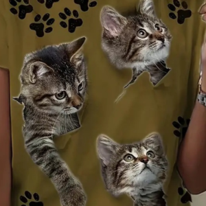 Kadın Kısa Kollu Kedi Ve Pati Baskılı Süprem T-shirt