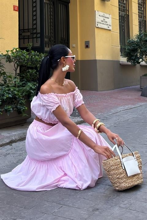 Büzgülü Crop Kat Detaylı Fırfır Etekli Takım 10196 Modelin Ölçüleri: Boy:165, Kg:55, Göğüs:90, Bel:72, Kalça: 100 Modelin üzerindeki ürün M/38 bedendir