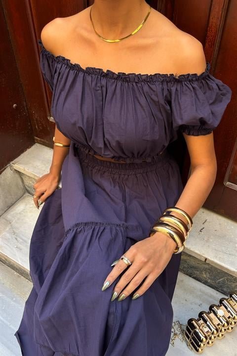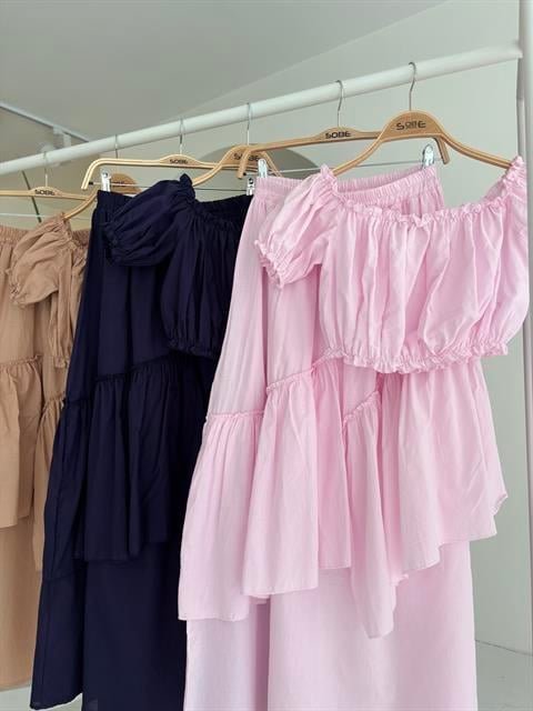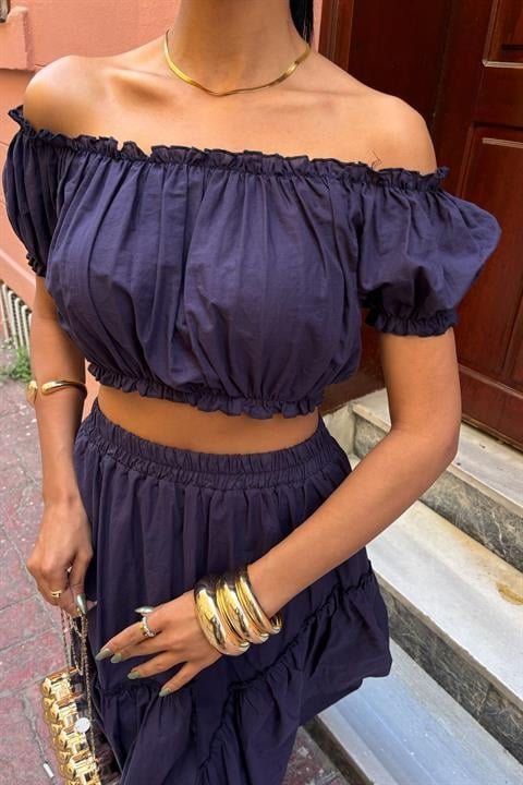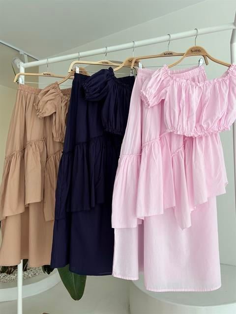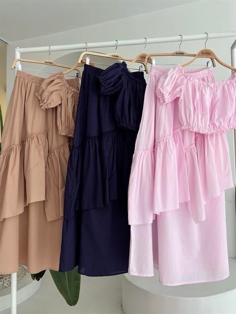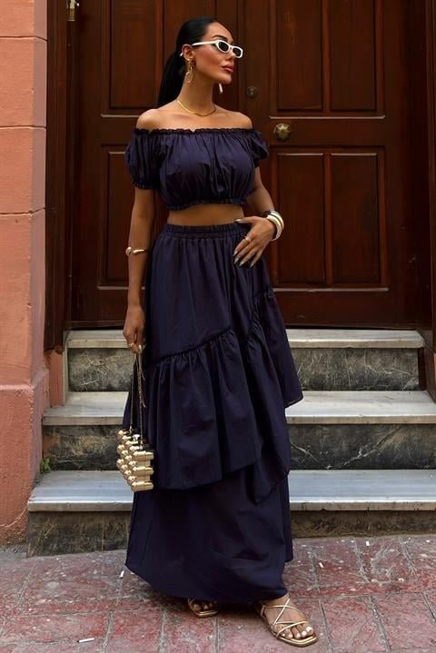Büzgülü Crop Kat Detaylı Fırfır Etekli Takım 10196