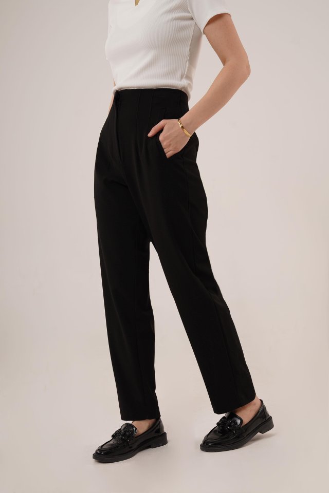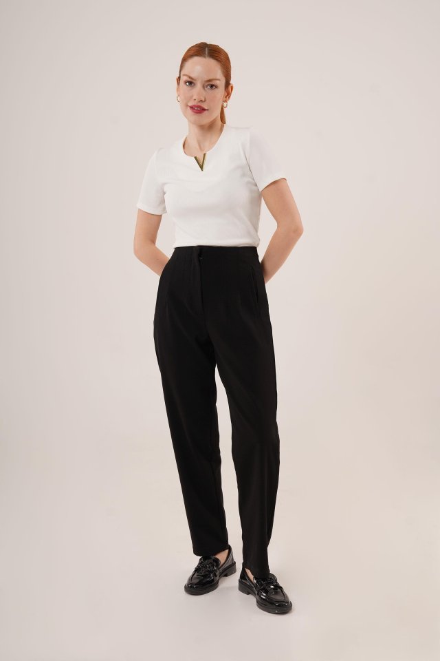 Çift Pens Detaylı Siyah Pantolon