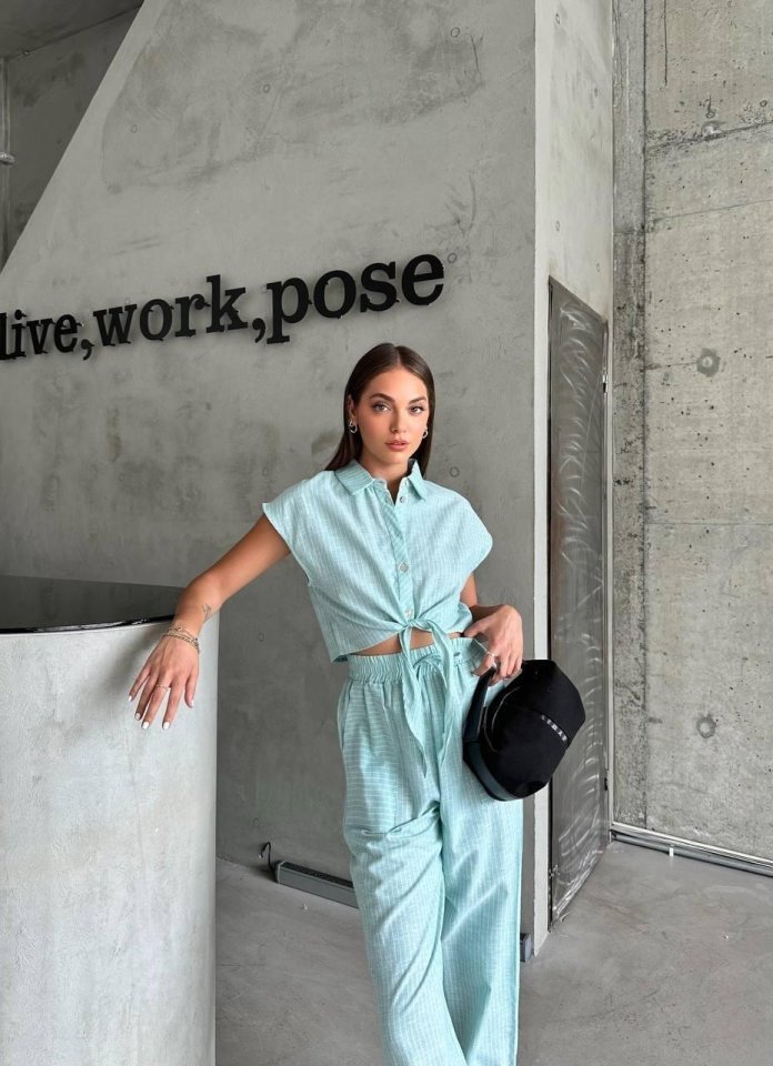 ÇİZGİLİ KETEN KOLSUZ CROP PANTOLON TAKIM – Yeşil Modelin Ölçüleri: Boy:165, Kg:55, Göğüs:90, Bel:72, Kalça: 100 Modelin üzerindeki ürün M/38 bedendir