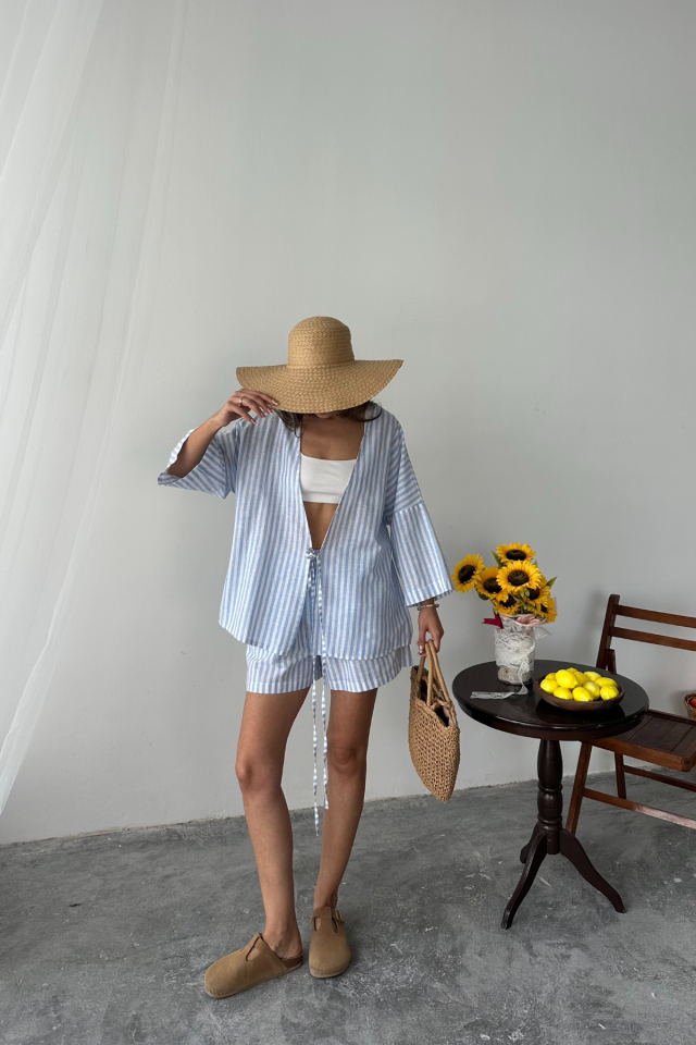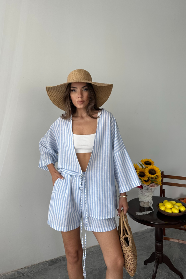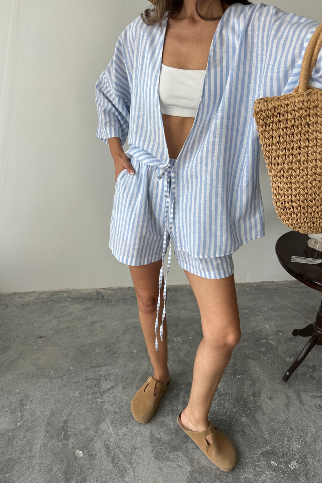 ÇİZGİLİ TUNİK -ŞORT TAKIM – Mavi
