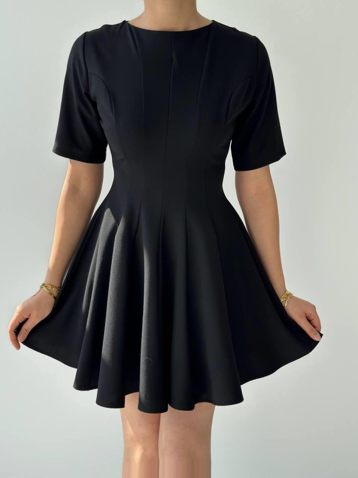 Kadın Kolsuz Bisiklet Yaka Arkadan Fiyonklu Süprem Kısa Elbise
