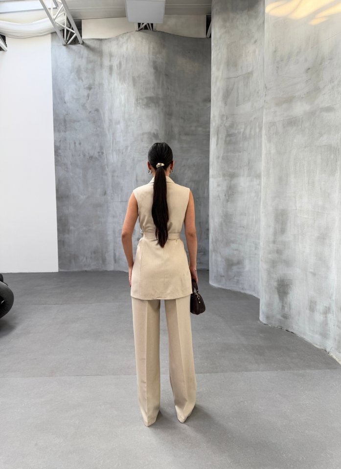 Düğme Detaylı Yelek – Krem