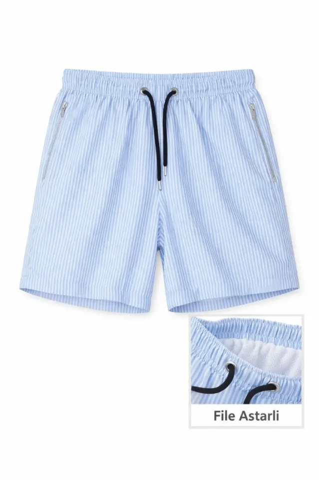 Deniz Şortu Fermuarlı Cepli File Astarlı Hızlı Kuruyan Premium – Bebek Mavisi