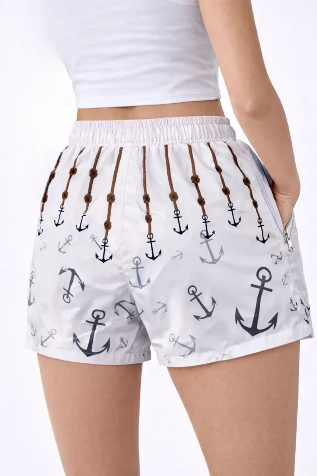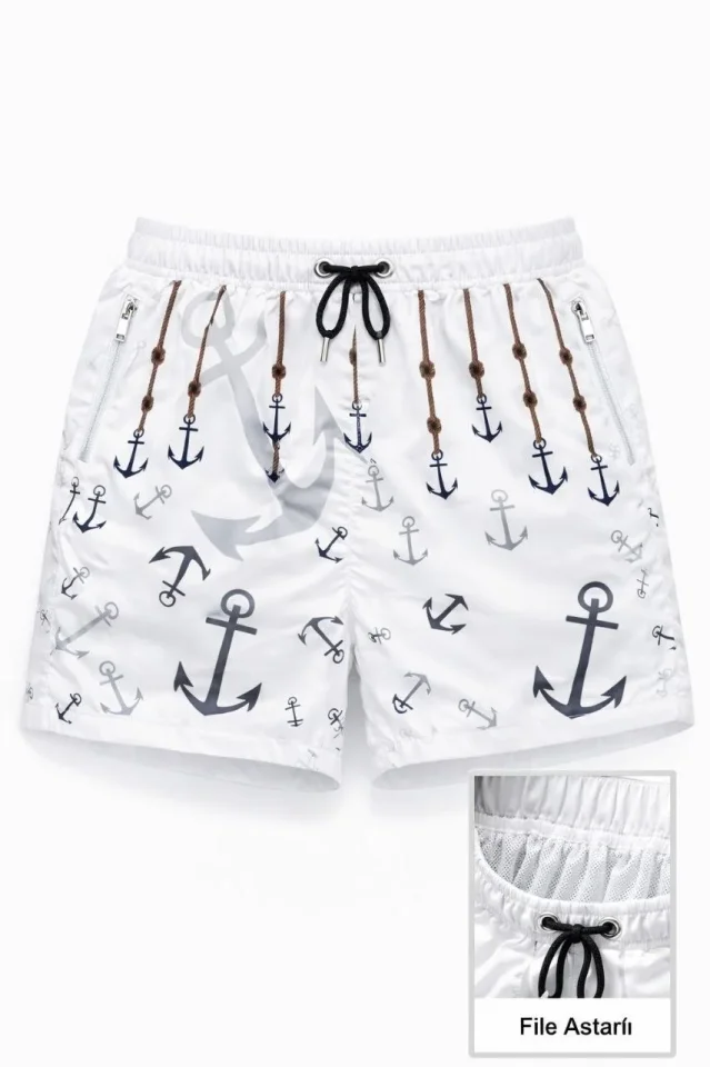 Deniz Şortu Fermuarlı Cepli File Astarlı Hızlı Kuruyan Premium – Beyaz