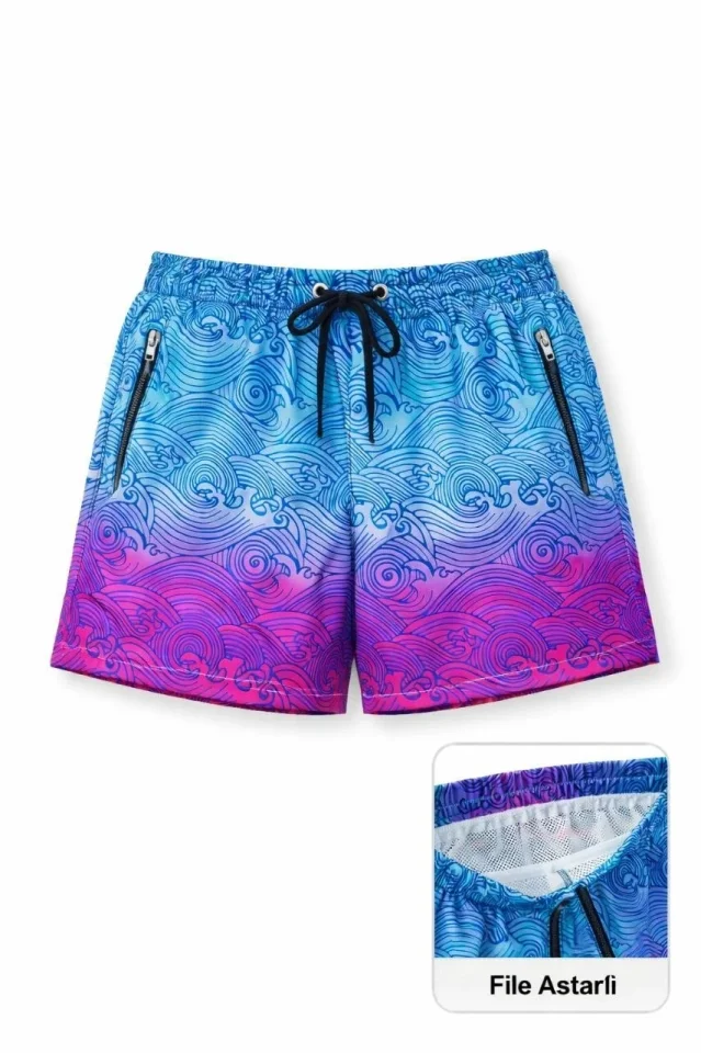 Deniz Şortu Fermuarlı Cepli File Astarlı Hızlı Kuruyan Premium – Çok Renkli