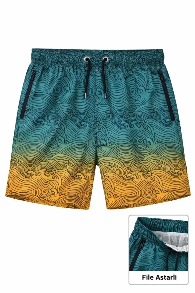 Deniz Şortu Fermuarlı Cepli File Astarlı Hızlı Kuruyan Premium – Çok Renkli
